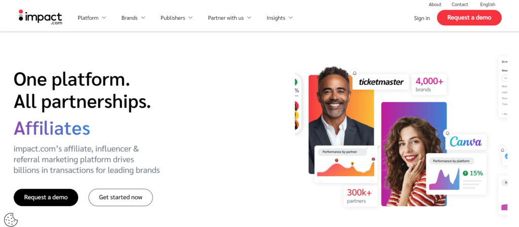 Impact.com is a professional affiliate marketing platform that connects content creators, bloggers, and marketers with well-known brands and companies.