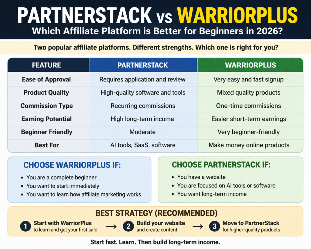 PartnerStack vs WarriorPlus: Which Affiliate Platform is Better for Beginners in 2026?